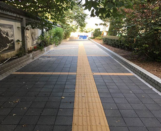 透水磚的多孔性質(zhì),使得聲波打在道路表面,引起透水磚內(nèi)部小孔或間隙的空氣運動,緊靠孔壁表面