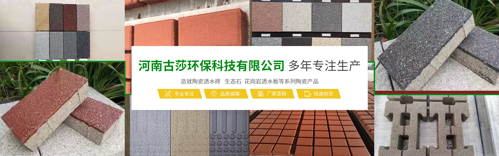 河南古莎環(huán)保科技有限公司總坐落于交通樞紐城市鄭州,是一家具備研發(fā)、生產(chǎn)、銷售能力為一體的綜合性現(xiàn)代化陶瓷企業(yè)。本公司專業(yè)生產(chǎn)經(jīng)營生態(tài)陶瓷透水磚、生態(tài)鋪石、PC仿石材透水磚、PC仿石材景墻磚、普通透水磚、燒結(jié)磚等系列產(chǎn)品,完善的研發(fā)團隊,完善的生產(chǎn)流水線設備,打造完善的陶瓷企業(yè)。古莎環(huán)保科技現(xiàn)代化陶瓷企業(yè)是美化城市,改善生活環(huán)境質(zhì)量的生態(tài)環(huán)保產(chǎn)品,可廣泛應用于公共建筑廣場、城市道路、公園、藝術(shù)景觀、廊道、房地產(chǎn)、別墅住宅小區(qū)、地鐵口、車站、高速公路服務區(qū)等。古莎環(huán)保科技在原有陶瓷企業(yè)基礎上,另拓展園林綠化、市政施工、瀝青包工包料施工、公路維修等業(yè)務板塊,專業(yè)培訓了一些園林綠化、市政施工技術(shù)人員,并有多年的施工養(yǎng)護經(jīng)驗以及建筑工程經(jīng)驗。保證市政工程施工質(zhì)量以及園林綠化后期養(yǎng)護規(guī)范化、專業(yè)化。古莎環(huán)保科技所遵循的企業(yè)與品牌發(fā)展思路,是奠定在品質(zhì)與產(chǎn)品應用之上。環(huán)保理念由我們共同倡導,理性思考,以推進步,感性溝通,以共建優(yōu)越。古莎環(huán)保科技與大家真誠合作,攜手共進,為助力海綿城市建設,建筑高品質(zhì)的綠色城市生活貢獻一份力量!